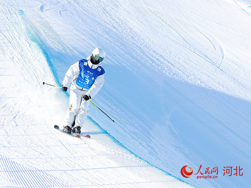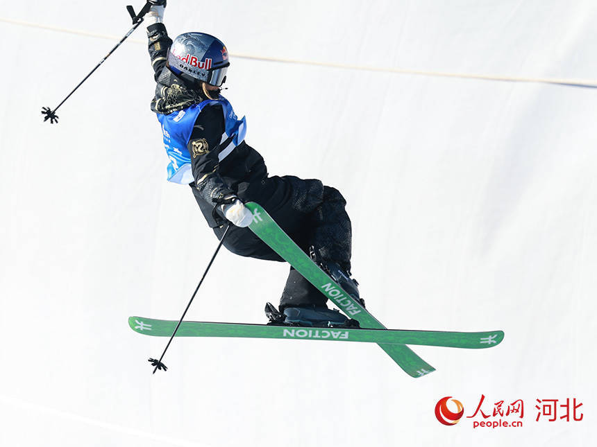 12月11日,中国选手张可欣在女子摆脱式滑雪U型边幅资历赛现场。东谈主民网记者 李兆民摄